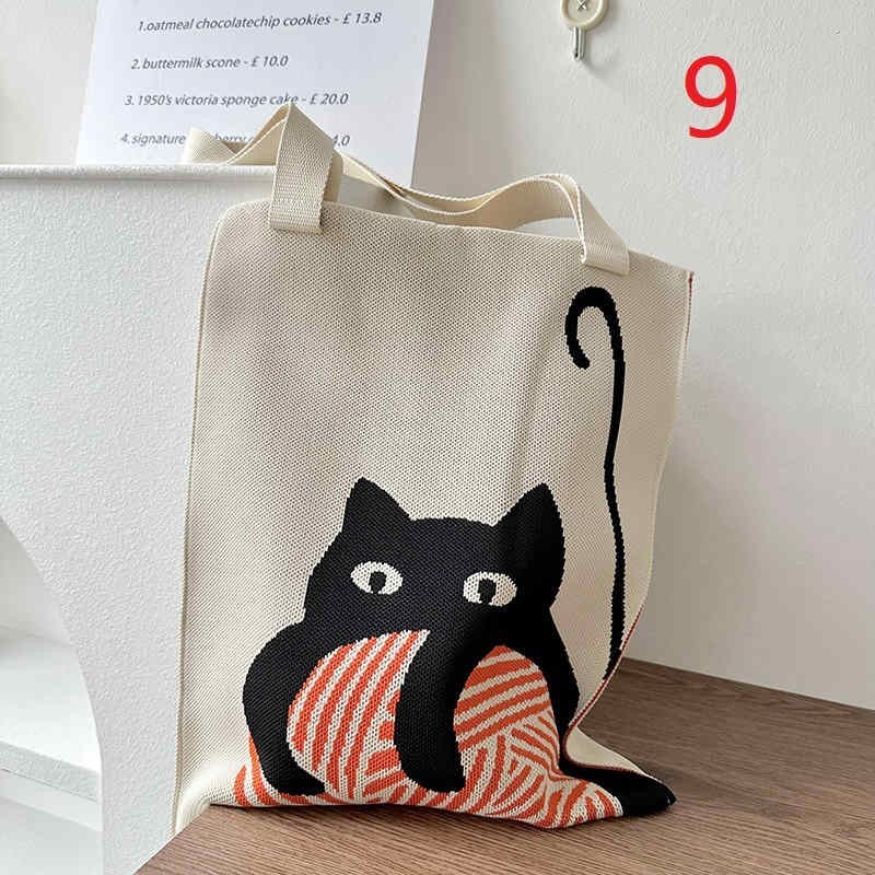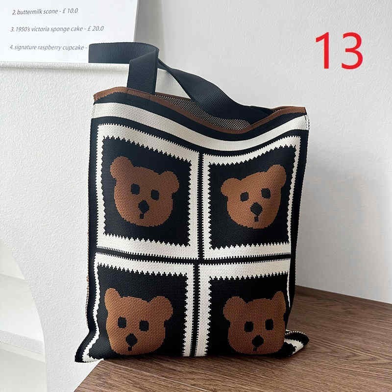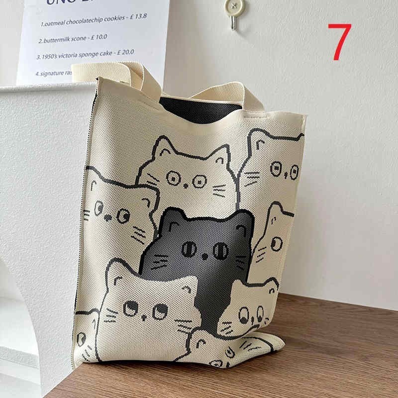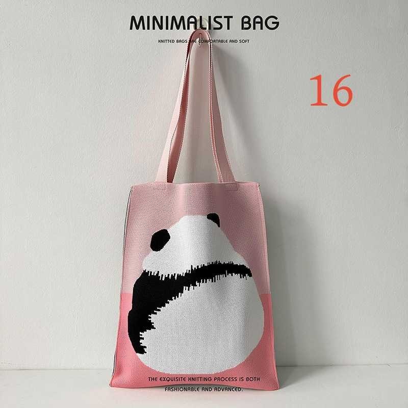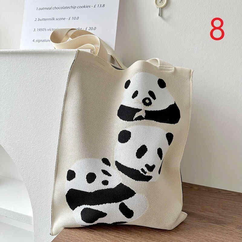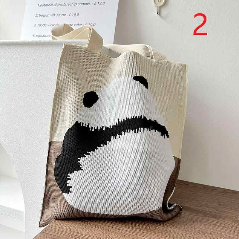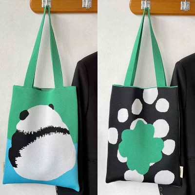 全新針織包韓版大包時尚簡約單肩背包 貓熊雙面款單肩手提包