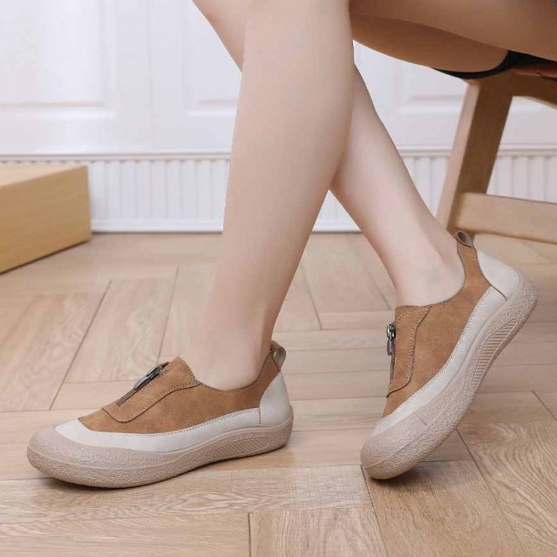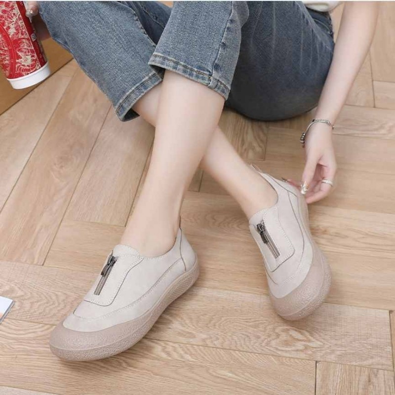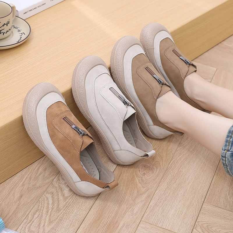 鞋子女透氣百搭休閒拉鏈新款 輕便軟底懶人皮鞋休閒鞋【正常鞋碼】