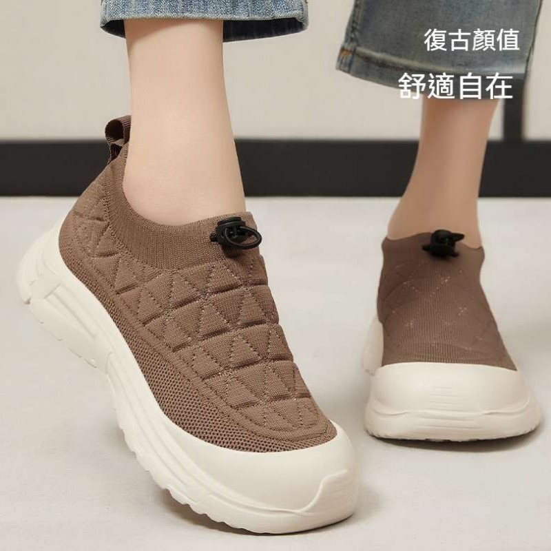 厚底3CM輕便飛織鞋,運動休閒都適合 ,防滑耐磨,減齡顯高,四季可穿