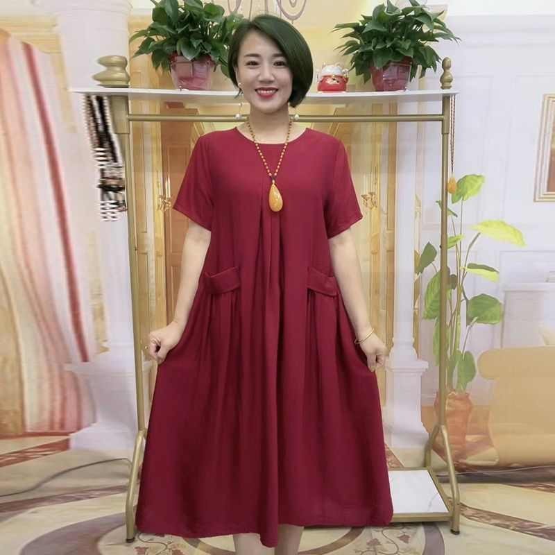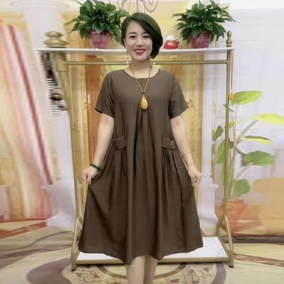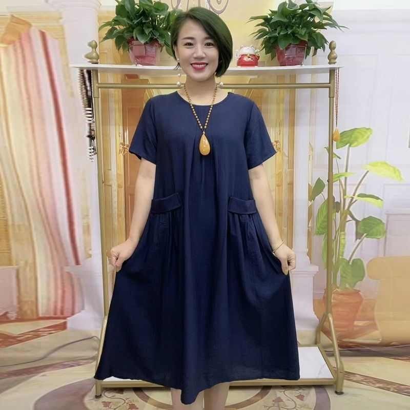 中長款寬鬆大碼洋裝,雙口袋設計,遮肉顯瘦,簡約百搭