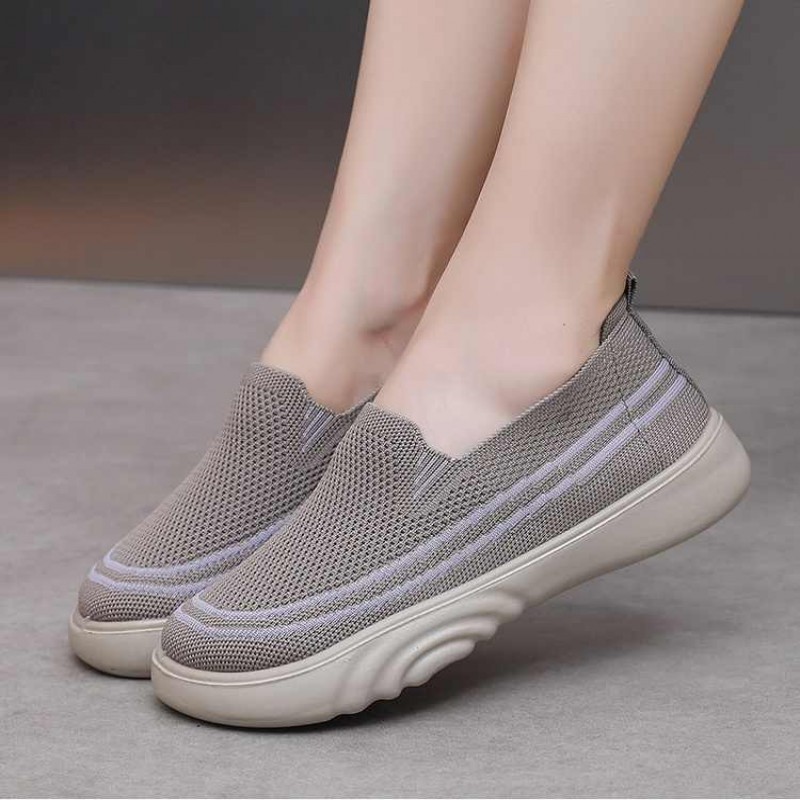 厚底防滑休閒鞋,軟底軟面,飛織面料,防滑耐磨