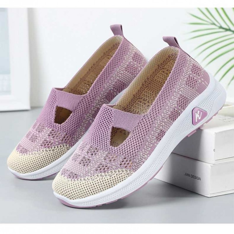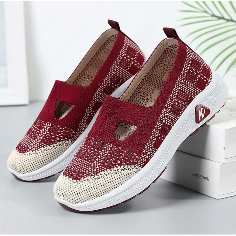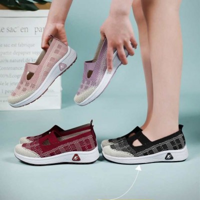 夏款女鞋透氣鏤空單鞋 一腳蹬飛織媽媽鞋,軟底軟面,防滑耐磨