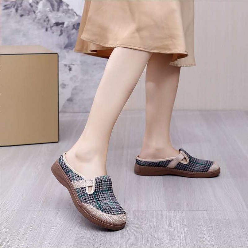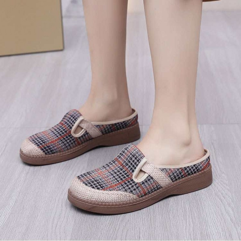 布鞋女軟底透氣時尚輕便休閒一腳蹬媽媽鞋居家出行半拖鞋