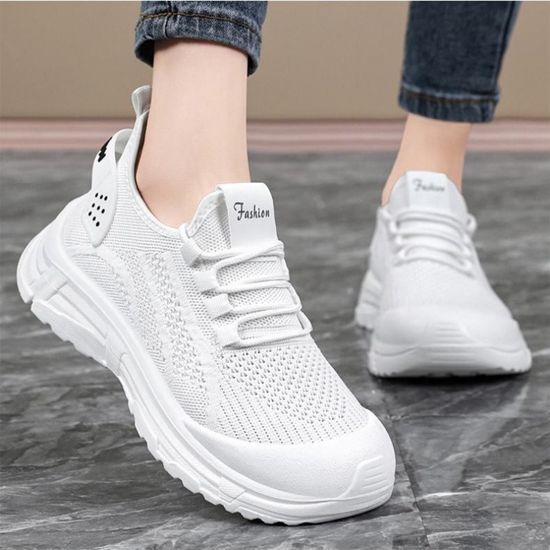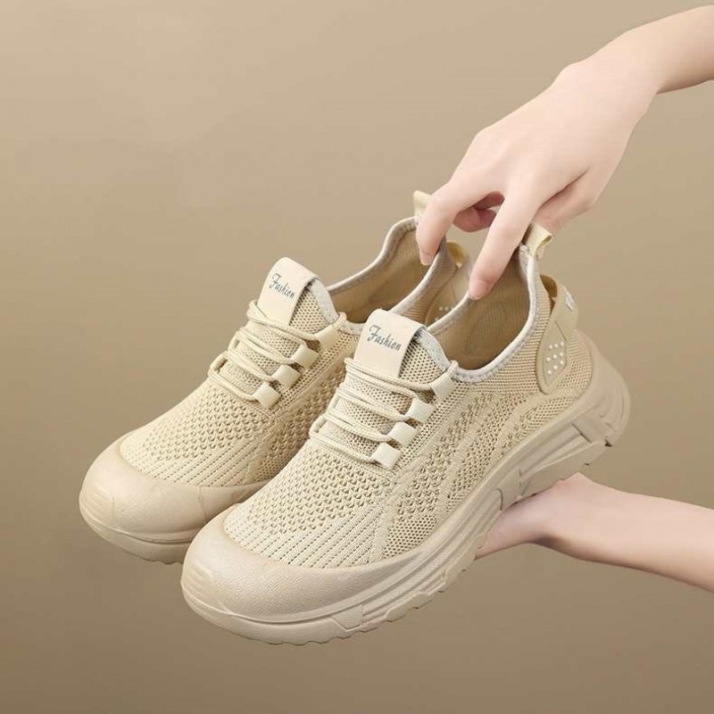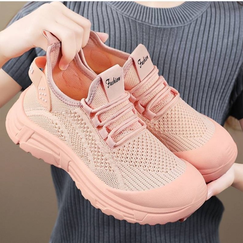 女鞋夏季透氣運動鞋 飛織網面跑步鞋繫帶輕便單鞋 軟底舒適休閒鞋