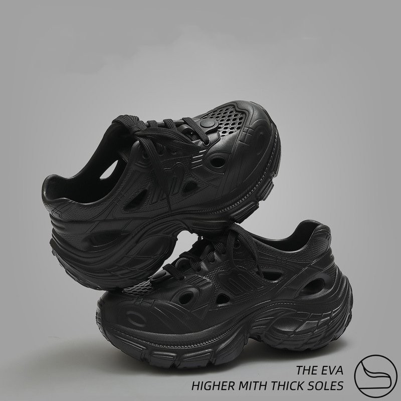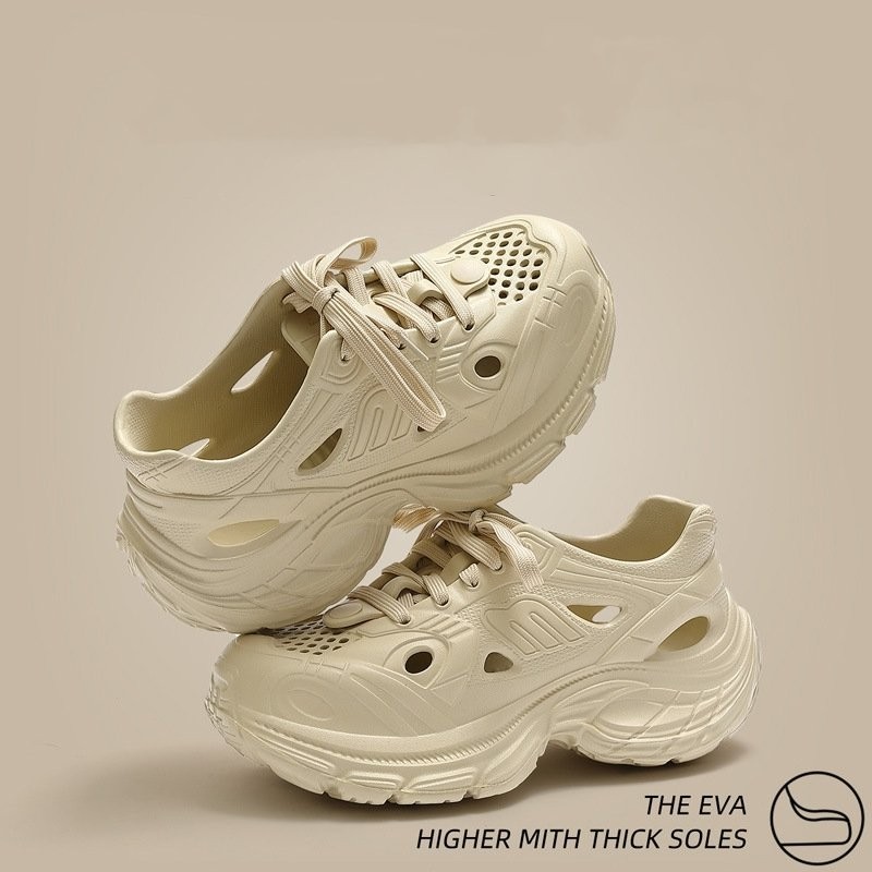 增高洞洞鞋女款全新外穿厚底沙灘海邊防滑防臭包頭涼鞋 增高6CM