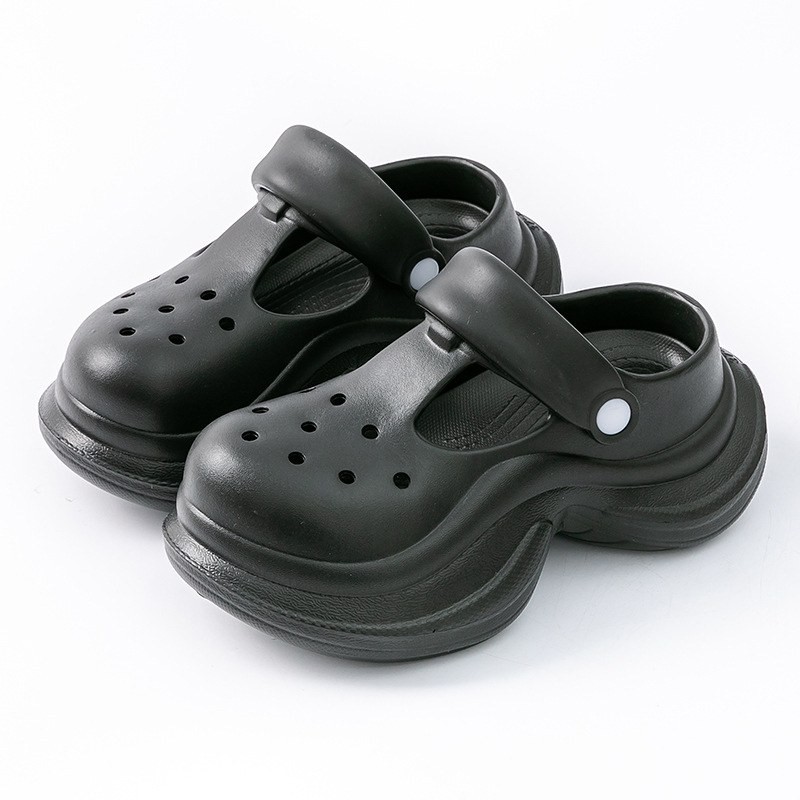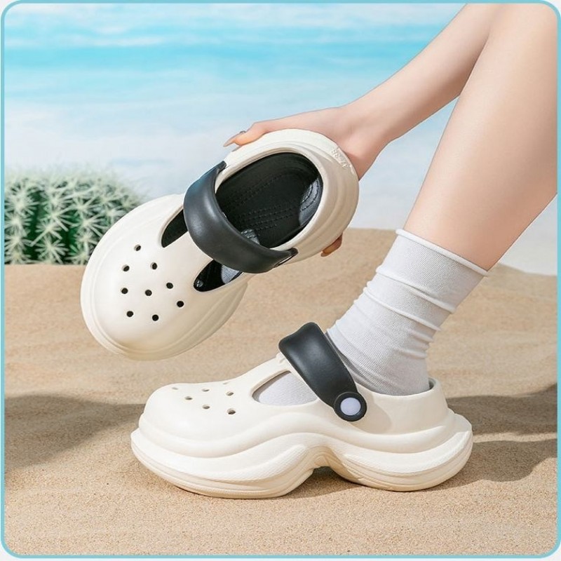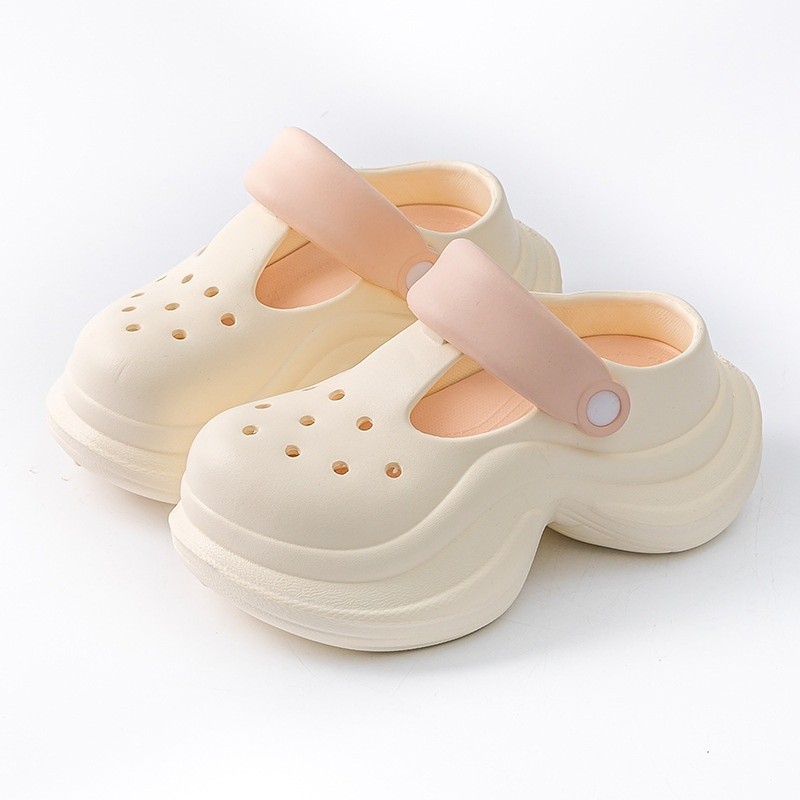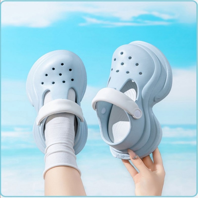新款小蠻腰E厚底洞鞋女 增高防滑防臭高級感鬆糕底包頭鞋 底厚5CM