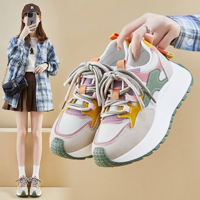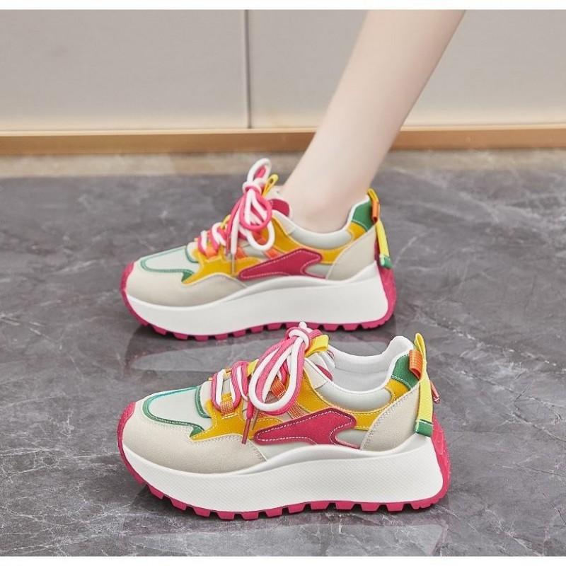 ins韓版新款老爹鞋女 跑步運動厚底增高休閒鞋 底厚4cm