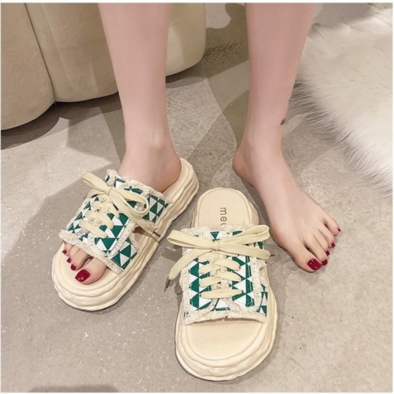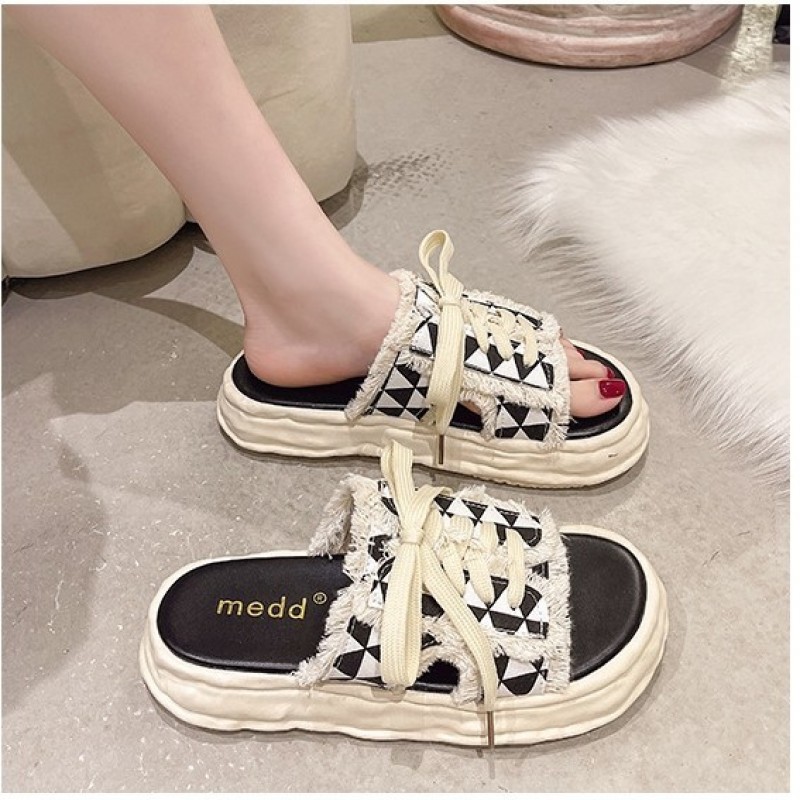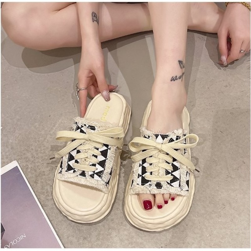 小香風繫帶拖鞋女夏季新款 外穿時尚百搭厚底防滑休閒涼拖鞋