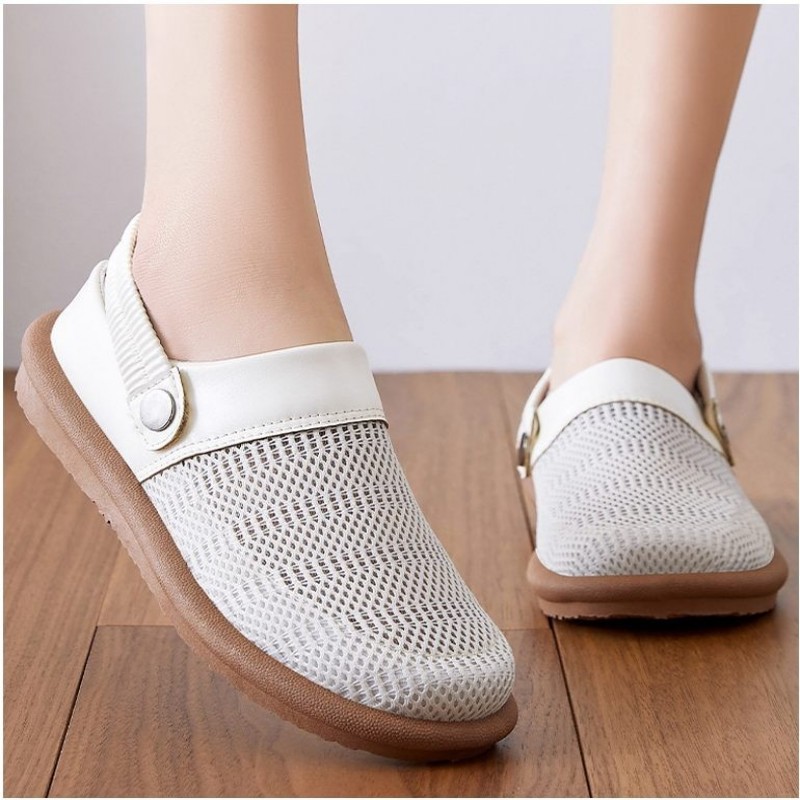 涼鞋女款夏季鏤空網面鞋 日系簡約包頭拖鞋軟底休閒鞋