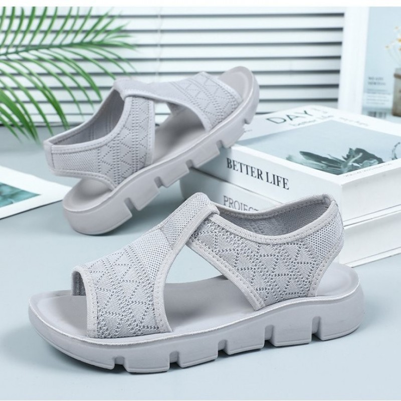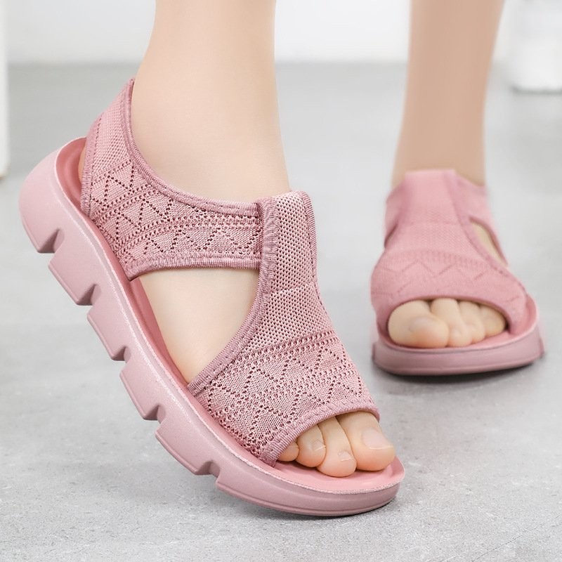 涼鞋女款夏季透氣不累腳厚底休閒女鞋 半拖鞋網面平底涼鞋