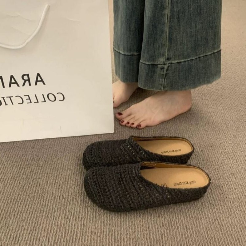 鏤空透氣包頭半拖鞋女 夏季新款外出羅馬風通勤穆勒鞋