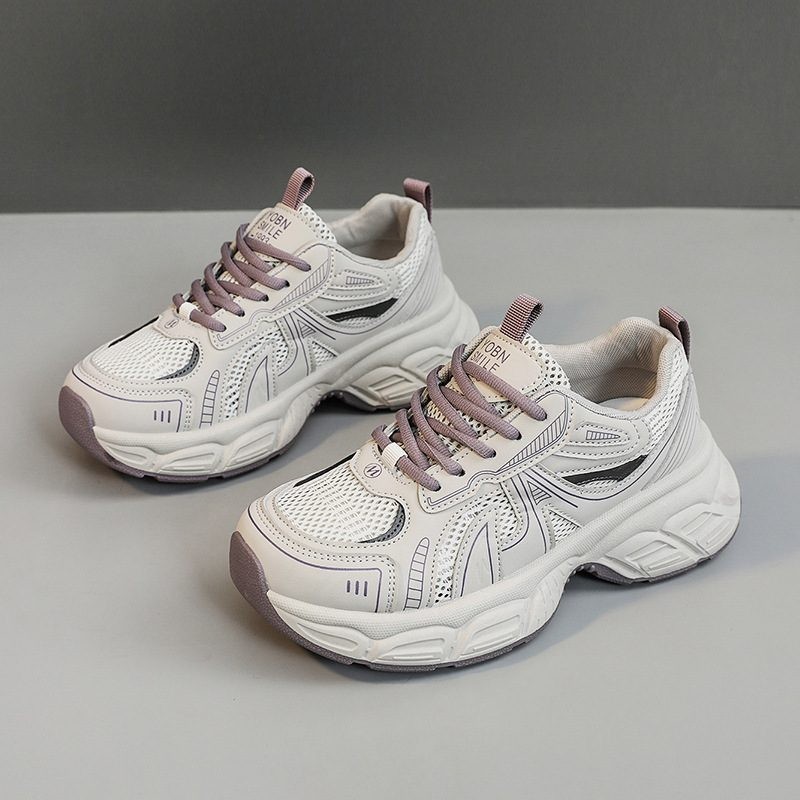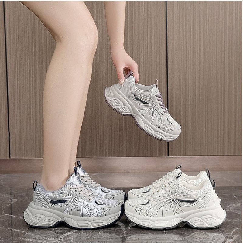 厚底老爹鞋女款 新款網面透氣休閒運動鞋 底厚5.5cm,氣質休閒