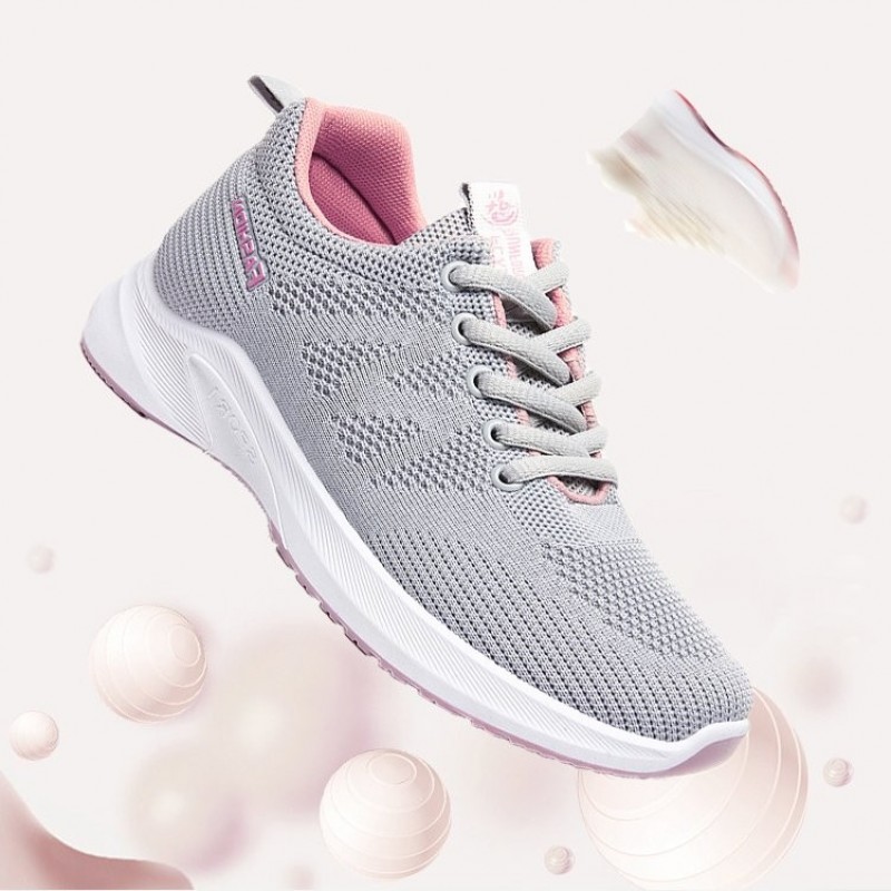 全新透氣飛織網面跑步鞋女 平底輕便軟底運動鞋